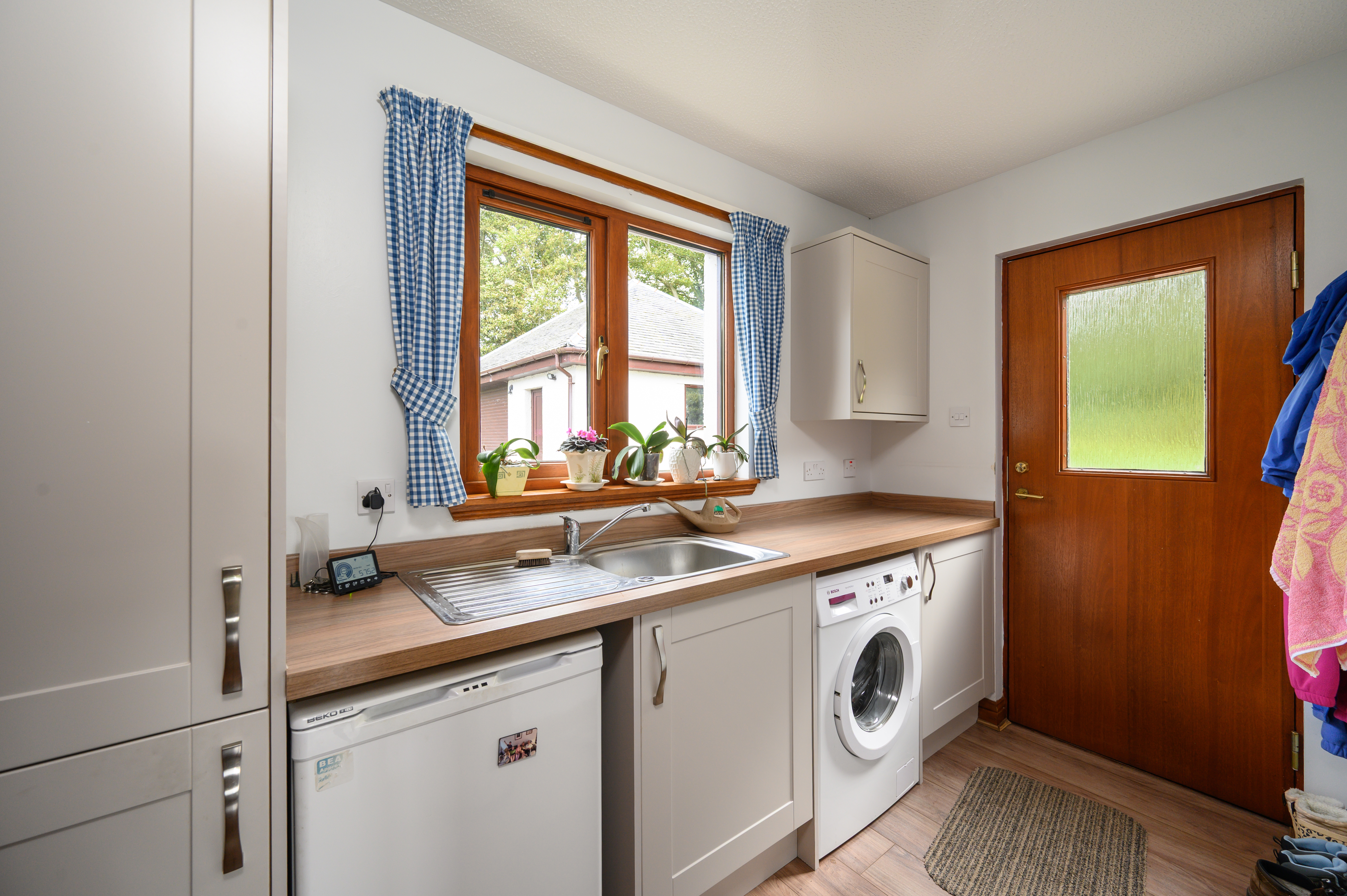 Externally, the property sits within well-kept garden grounds to the front and rear, featuring lawned areas, mature trees and shrubs, and a defined parking area. The gardens are fully enclosed by fencing, providing a pleasant and secure outdoor space. Pomathorn Bungalow.represents an excellent opportunity to acquire a spacious and versatile home in a well-connected rural setting, offering comfortable living both inside and out.